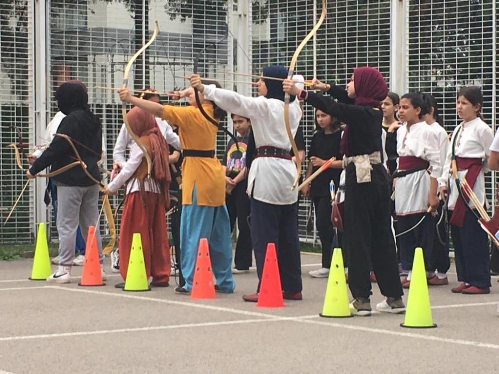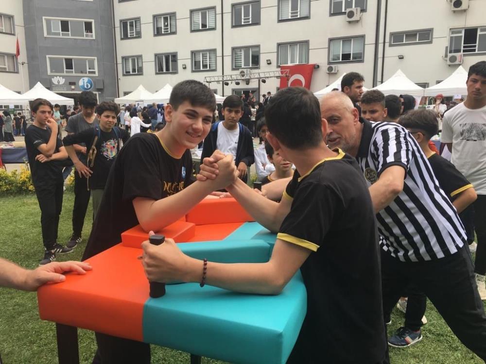 Etkinlikte, bileğine güvenen gençler bilek güreşine tutunurken, kız kemankeşler ise yaylarını gererek hedefe kitlendi.
