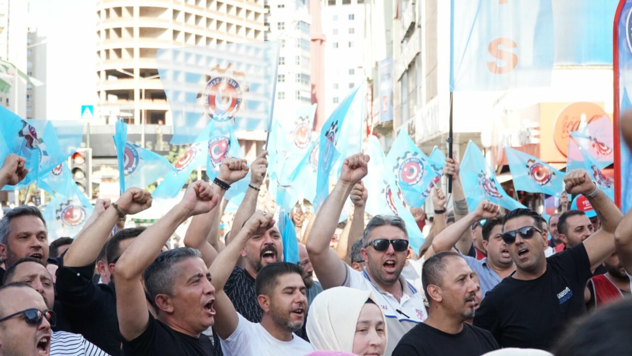 Bursa’da 15 Temmuz Demokrasi Meydanı’nda toplanan işçiler adına açıklamayı Türk-İş 8. Bölge Temsilcisi Ruhi Biçer okudu. Hayat pahalılığı, yüksek enflasyon, adaletsiz vergi sistemi, işsizlik, güvencesiz çalıştırma ve kayıt dışı istihdam gibi sorunların başta işçiler olmak üzere toplumun büyük bölümünün yaşam şartlarını ağırlaştırdığını belirten Biçer, mutlu bir azınlık dışında halkın geçim sıkıntısıyla mücadele ettiğini söyledi.