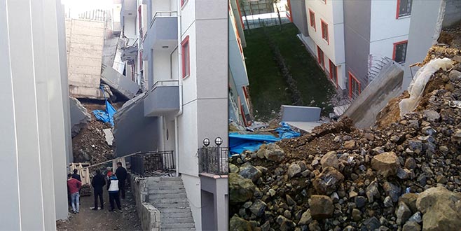 Hisar Mahallesi’nde 5 blokluk inşaatın istinat duvarı yıkıldı.