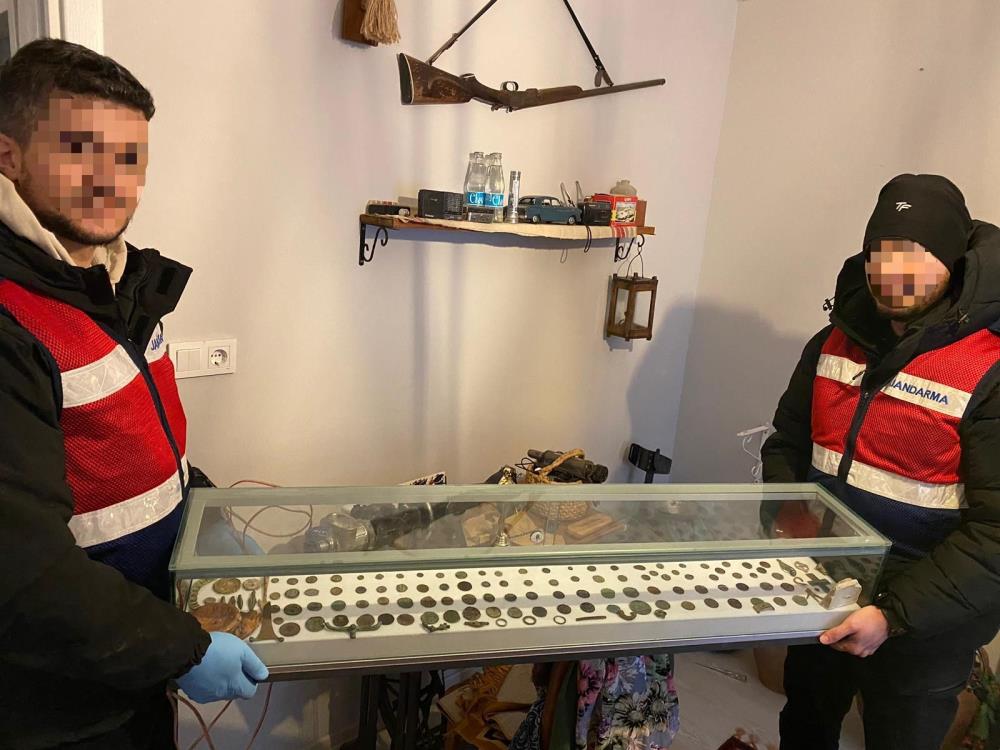 Bağ evinde jandarma ekipleri tarafından yapılan aramalarda Roma, Bizans, Osmanlı ve Selçuklu dönemlerine ait 400’e yakın tarihi eser ele geçirildi.