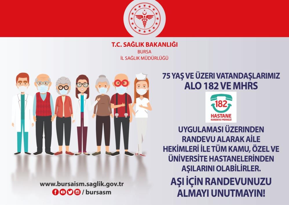 Sağlık Bakanlığı talimatları doğrultusunda halen 75 yaş üzeri vatandaşların aşılanmasına devam ettiklerini belirten Dr. Yavuzyılmaz, “75 yaş üzeri vatandaşlarımıza aşı uygulanabilmesi için öncesinde mutlaka randevu alınması gerekiyor. Bu vatandaşlarımız, Alo 182 veya MHRS uygulaması üzerinden randevu oluşturduktan sonra tüm kamu, özel ve üniversite hastanelerinde veya aile hekimliklerinde aşılarını olabilmektedirler. 85 yaş üzeri vatandaşlarımız ise aynı şekilde randevularını aldıktan sonra bu kurumlarda aşı yaptırabileceği gibi talep ettikleri takdirde evlerinde de aşı olabilmektedir” diye konuştu. (İHA)