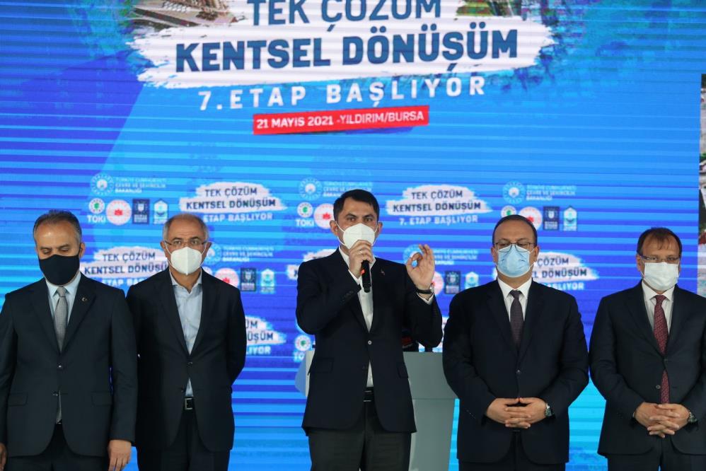 “81 ilimizde hemen hemen birçok önemli ilçesinde bu anlamda yapılması gerekenleri bir bir hayata geçirmeye gayret gösteriyoruz. 2012 yılında Cumhurbaşkanımızın başlattığı Türkiye’nin her yerinde kentsel dönüşüm hedefiyle her yıl 300 bin 5 yıl içinde 1 buçuk milyon konutu dönüşümü için çalışmalarımızı başlatıyoruz. Koyduğumuz hedefler doğrultusunda birçok ilde vatandaşımızın bu noktada kangren olmuş birçok konu üzerinde çalışmalarımızı yürütmeye gayret gösteriyoruz. 1 buçuk milyon konut tamamlandı. Sosyal konutlarla birlikte 2 buçuk milyon konutta oturan yaklaşık 10 milyon vatandaşımızın can ve mal güvenliğini teminat altına aldık. Türkiye genelinde yatırım değeri 90 milyon TL olan 300 bin sosyal konut ve kentsel dönüşüm konutunda çalışmaları kararlı şekilde yürütülmektedir” dedi.