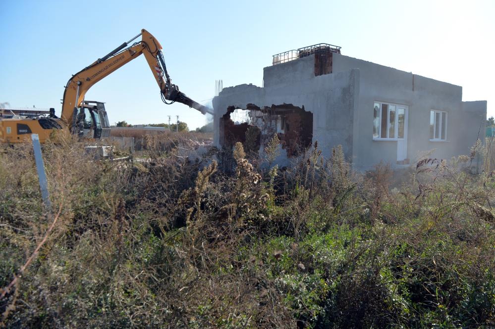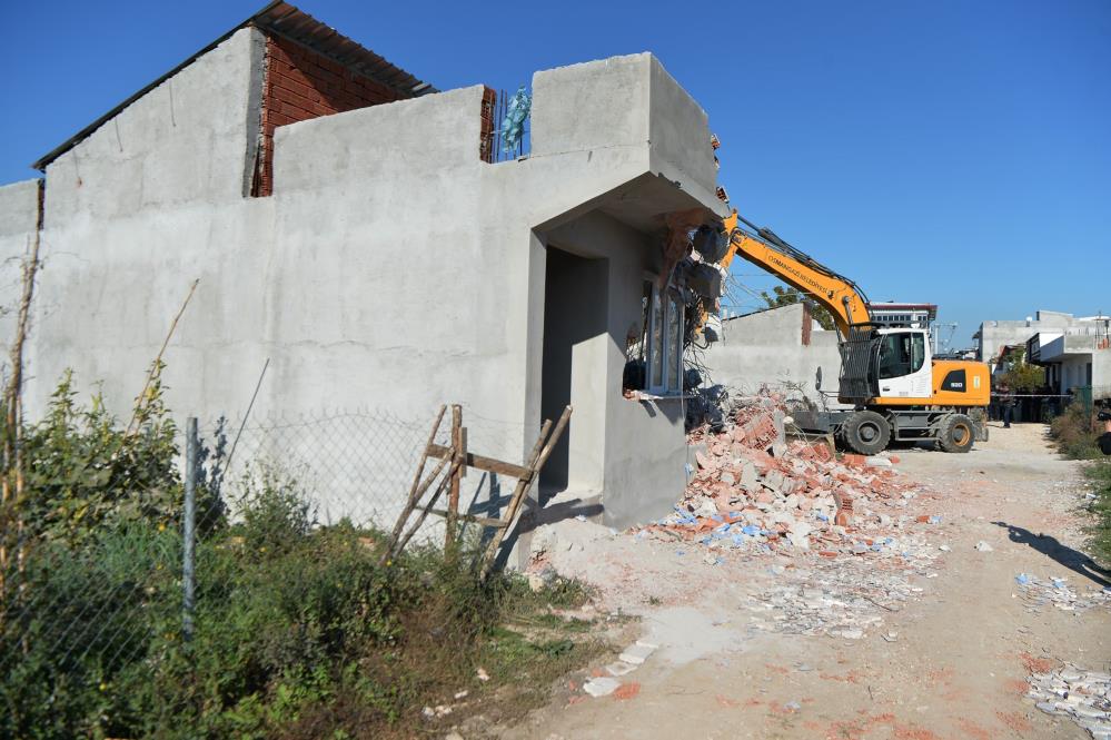 Hakkında yıkım kararı alınan yapıların yıkımı için sabah erken saatlerde mahalleye giden Yapı Kontrol Müdürlüğü ekipleri, kaçak yapıları iş makinesi ile yıkarak yerle bir etti.