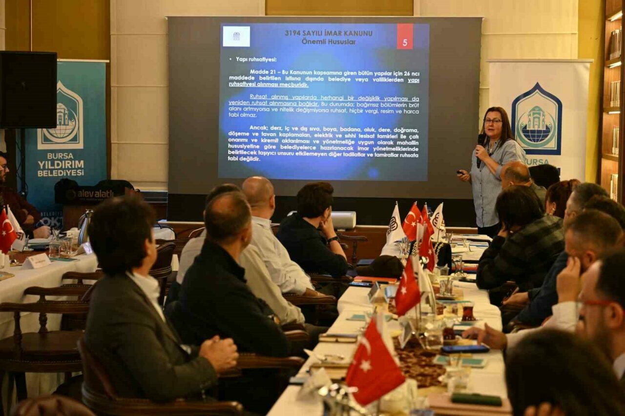 Bursa Belediyeler Birliği’nin merkezi olan Alev Alatlı Şehir Düşünce ve Sanat Merkezi’nde yapılan toplantıya Bursa Belediyeler Birliği ve Yıldırım Belediye Başkanı Oktay Yılmaz ile üye belediyelerin yapı kontrol müdürleri ve ilgili başkan yardımcıları katıldı.