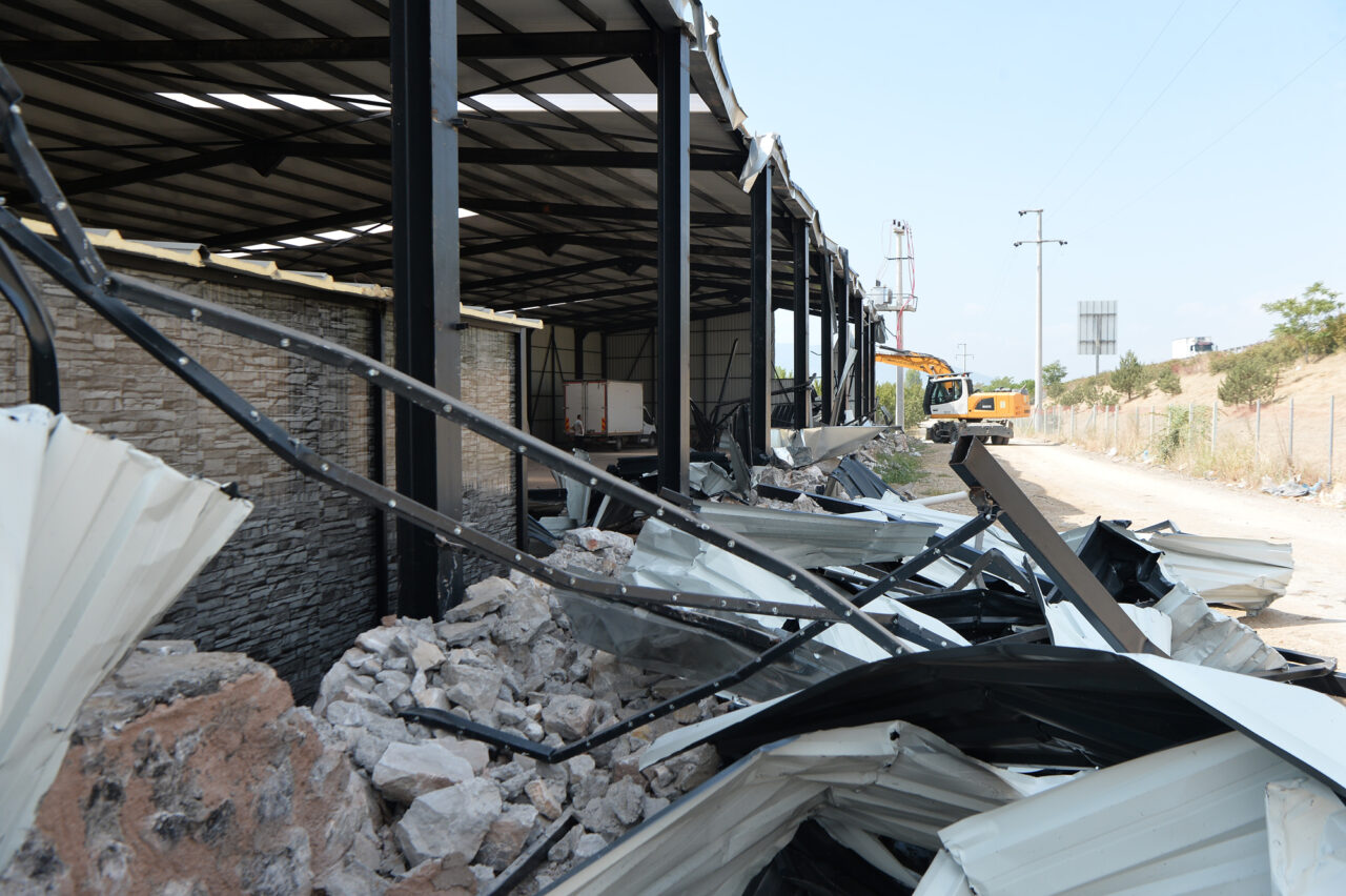 Yürürlükteki kanunlar çerçevesinde hareket eden belediye ekipleri, ruhsatsız deponun yıkımı için sabah erken saatlerde bölgeye gitti. Geniş güvenlik önlemleri altında gerçekleştirilen yıkımda, kaçak depo iş makinesi ile yıkılarak kullanılamaz hale getirildi.
