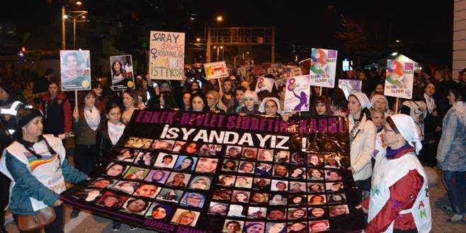 Heykel Meydanı’nda toplanan gruba basın açıklamasını yapan Bursa Kadın Platformu Sözcüsü Filiz Tali, “Kadın cinayetlerini protesto etmek için yürüyoruz. Erkek egemenliğine karşı kadınların özgür olması için yürüyoruz. Amacımız kadın haklarının olduğu bir ülke inşa etmek. Bunun için 8 Mart Dünya Kadınlar Günü’nde toplandık dedi. Bursa Kadın Platformu üyeleri basın açıklamasının ardından olaysız bir şekilde dağıldı.