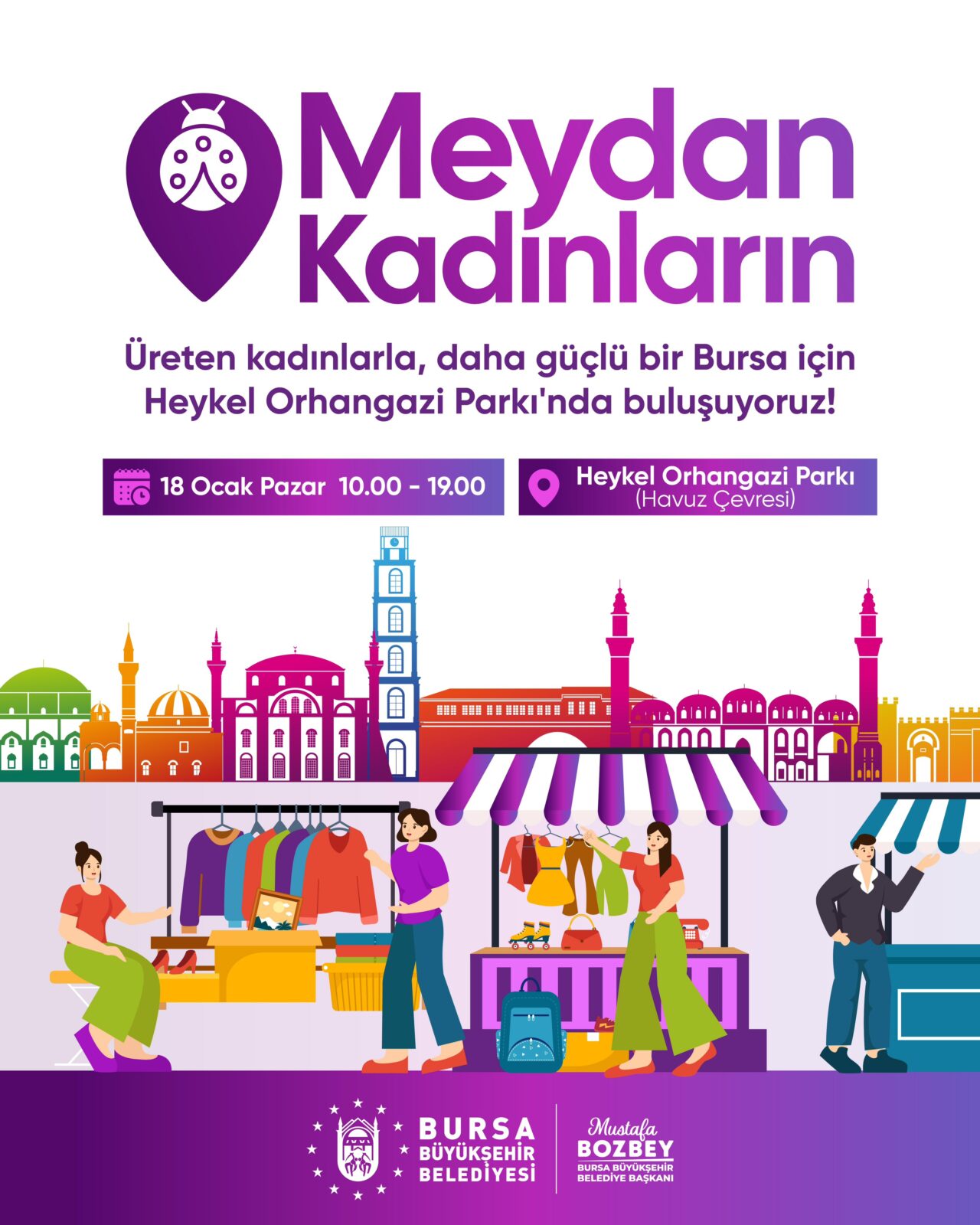 18 Ocak Pazar günü saat 10.00 – 19.00 aralığında, Heykel Orhangazi Parkı’nda el emeği ürünlerin sergilendiği birbirinden renkli stantlar ve sosyal etkinliklerle kadınlar keyifli bir gün geçiriyor.