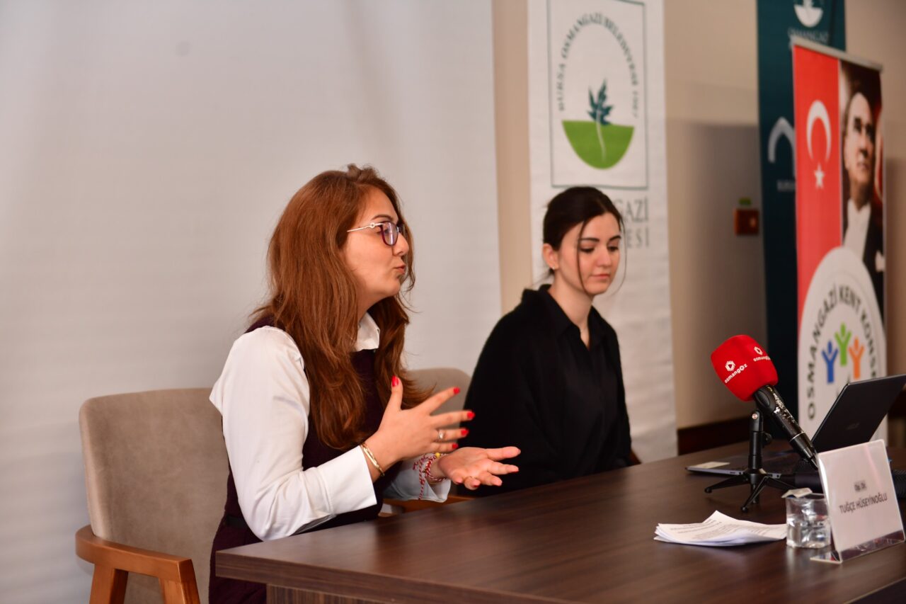 Konuşmaların ardından Osmangazi Kent Konseyi Başkanı Sevim Sakallı, Op. Dr. Tuğçe Hüseyinoğlu ve Klinik Psikolog Büşra Bilge Çağlayan’a katkılarından dolayı teşekkür plaketi takdim etti.