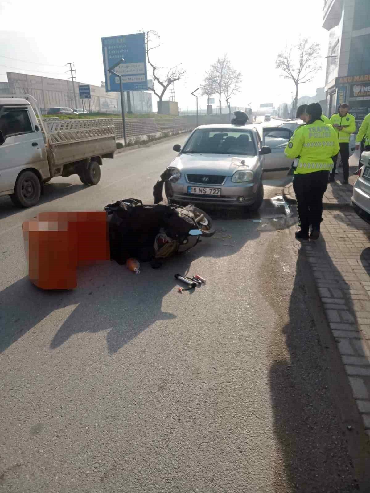 Edinilen bilgiye göre, kaza, saat 10.30 sıralarında Orhaniye Mahallesi Baykut Sokakta meydana geldi. Baykut sokakta seyreden sürücü Salih V.(21) yönetimindeki 16 BKD 314 motosiklet, Küçükzindancık sokaktan çıkan sürücü Muhammet H.(34) yönetimindeki 16 NS 722 plakalı Hyundai marka otomobil ile kafa kafaya çarpıştı.