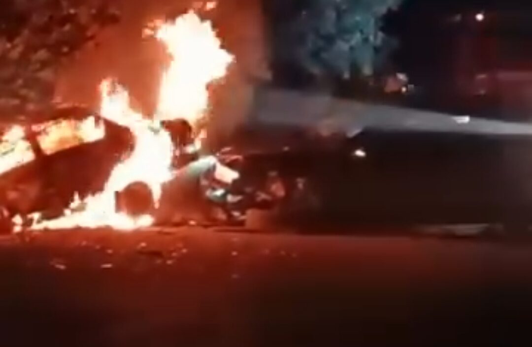 Öte yandan otomobilin yandığı anlar, çevredekilerin cep telefonu kamerasıyla kaydedildi.