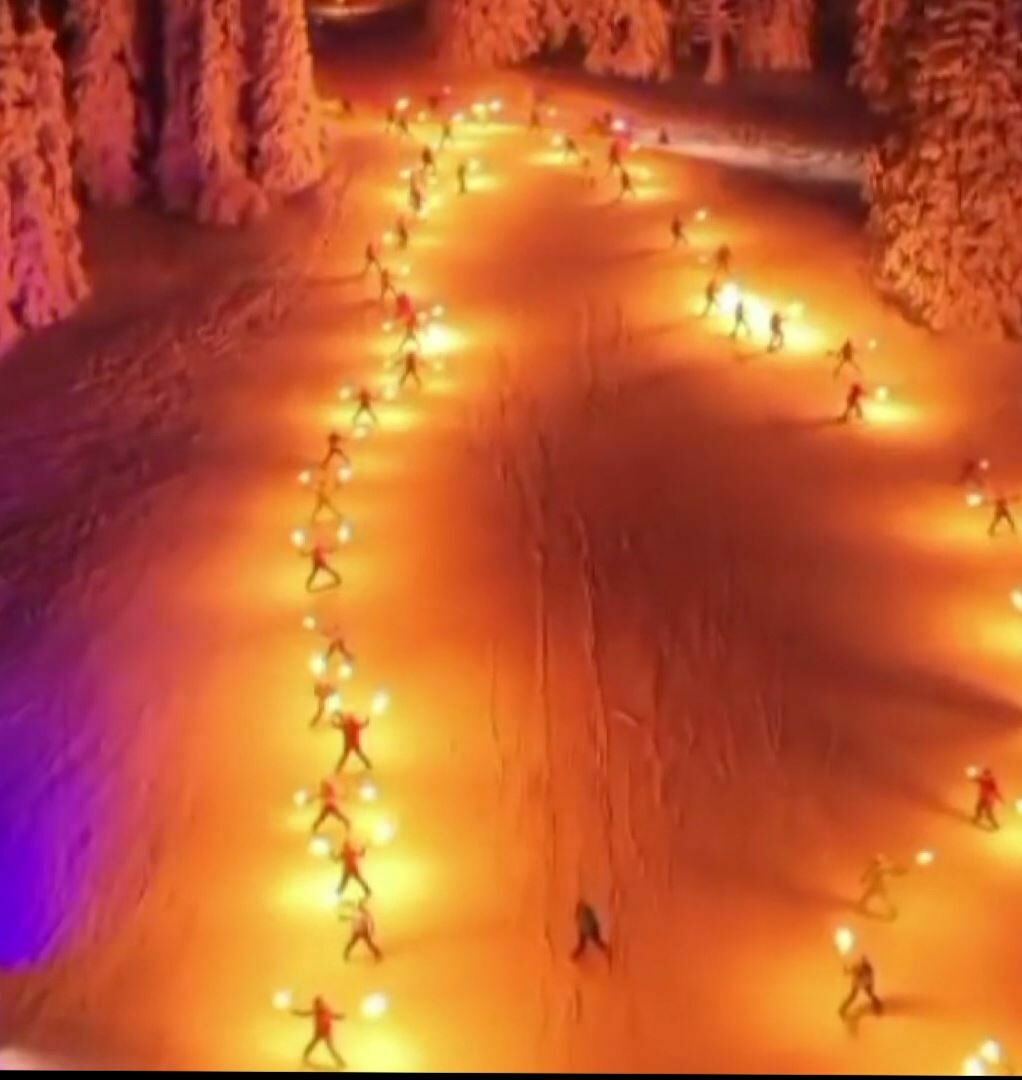 Uludağ’daki kayak öğretmenleri ellerindeki meşalelerle kayak yaparak, arkadaşlarını andı.