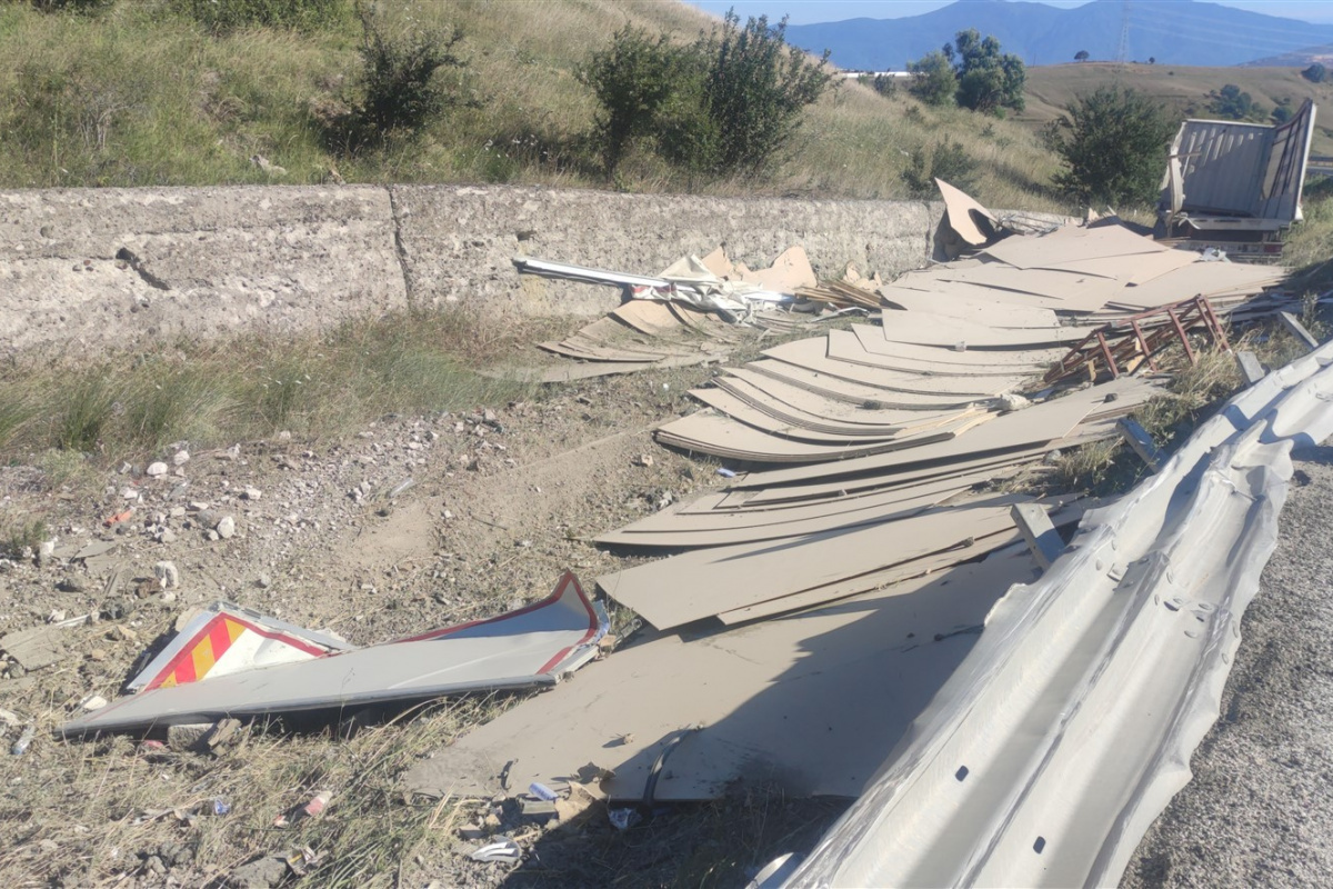Bariyerleri aşan ve yol kenarındaki şarampole uçan kamyon hurdaya döndü.