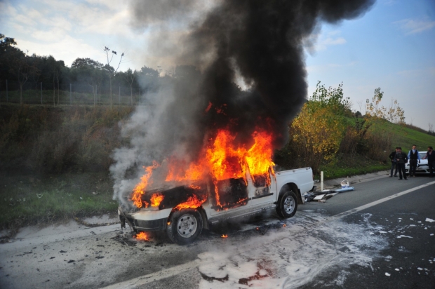 Alevleri fark eden işçiler araçtan inerek yangın tüpleriyle araca müdahale etti. Çevredeki sürücülerin de müdahale etmesine rağmen kısa sürede büyüyen yangın bir anda tüm aracı sardı. Haber verilmesi üzerine sevk edilen tfaiye ekiplerinin müdahale ettiği araç kullanılamaz hale geldi. Soruşturma sürdürülüyor.