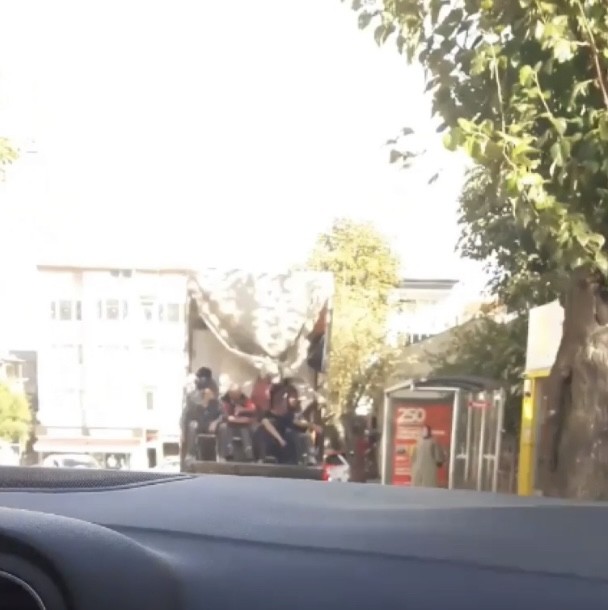 Edinilen bilgiye göre, eşya taşıyan bir grup insanın kamyonet kasasında yolculuk yaptılar. O tehlikeli yolculuk ise cep telefon kamerasına yansıdı.