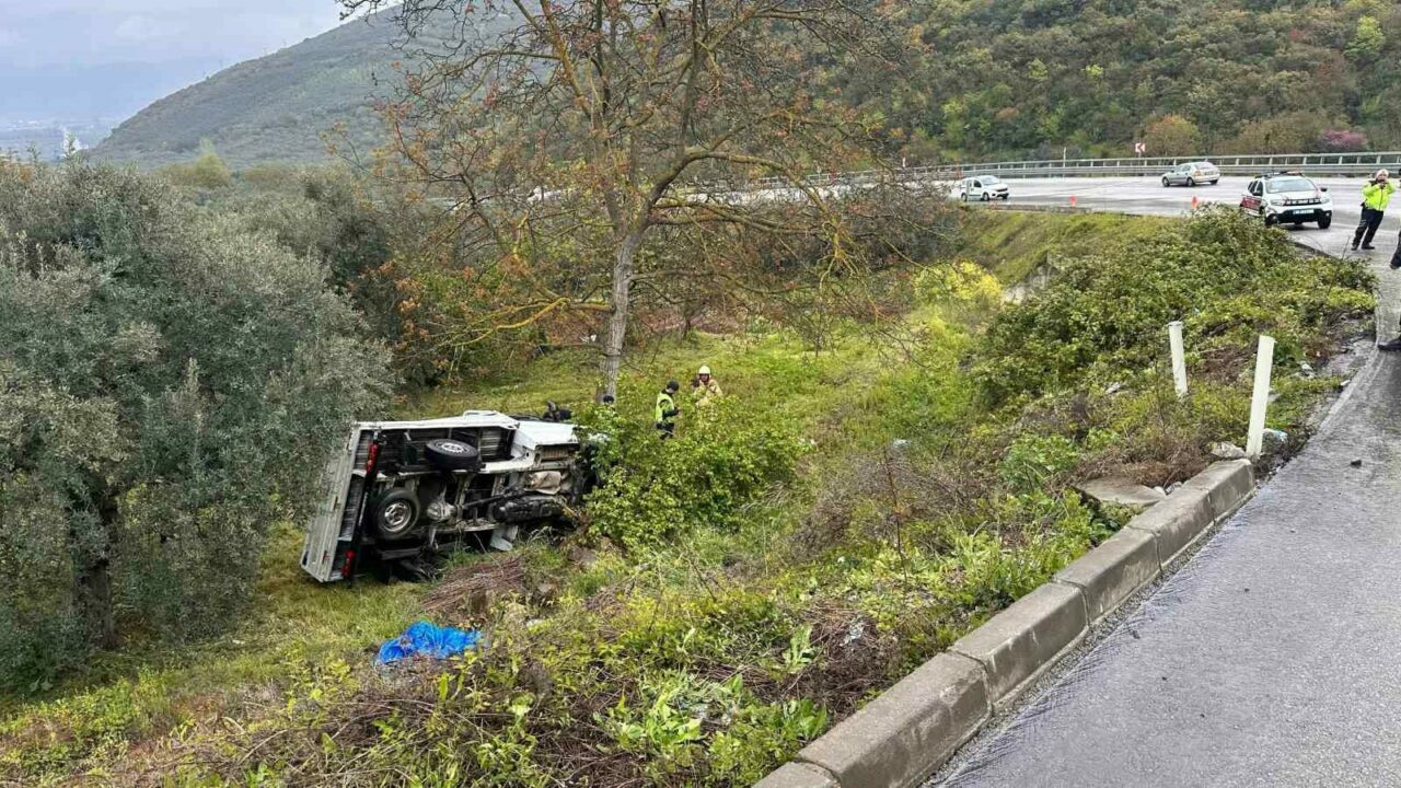 Edinilen bilgilere göre, İznik ilçesinden Yenişehir istikametine seyir halindeki Muhammet K. idaresindeki 54 RH 956 plakalı kamyonet, yağışlı havanın etkisiyle kayganlaşan yolda kontrolden çıkarak şarampole savruldu.