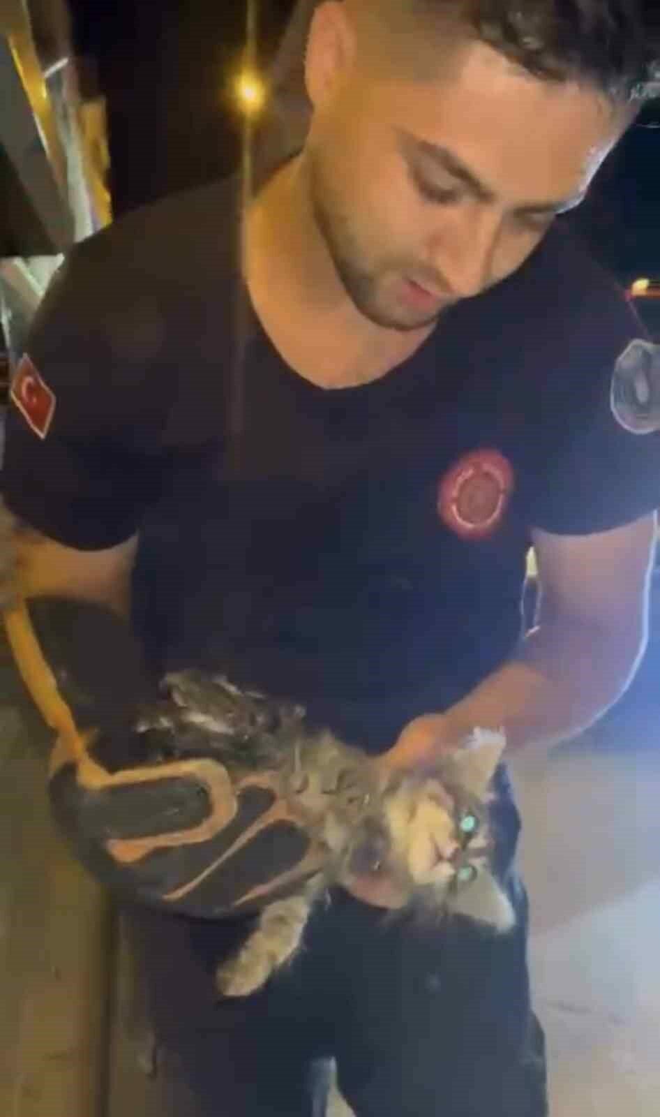 Yaklaşık yarım saat süren çalışmada itfaiye personeli, dikkatli bir şekilde kediyi ensesinden tutarak bulunduğu yerden çıkardı. Kurtarma anında hem kedinin hem de itfaiyecilerin zor anlar yaşadığı görüldü. Borudan çıkarılan kedi, itfaiye personelinin kucağında sakinleştirildi ve bir süre sevildi. Çevrede toplanan vatandaşlar, ekiplerin özverili çalışmasını alkışlarla takdir etti.