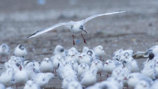 Tüydeş, “Kuşlar fırtınada zorlanıyorlar. Sahilden ise sürekli havalanıyorlar. Nedeni de ne yazık ki kıyıya vuran ve rüzgarın etkisiyle uçuşarak onları korkutan plastik ve diğer çöp atıkları. 10 dakika içerisinde gelişigüzel uçuşan plastik atılarından korktukları için defalarca havalandılar.