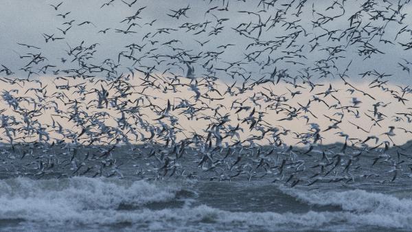 Tüydeş, martı türleri ile kum kuşlarının kötü hava şartlarında hayatta kalabilmek için sahildeki kumul bitkileri ile kıyıya vurmuş kütük ve taş parçalarını siper olarak kullandıklarını belirtti.