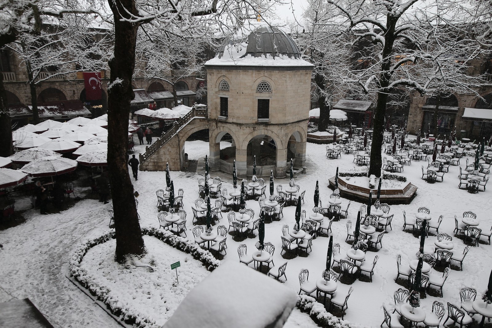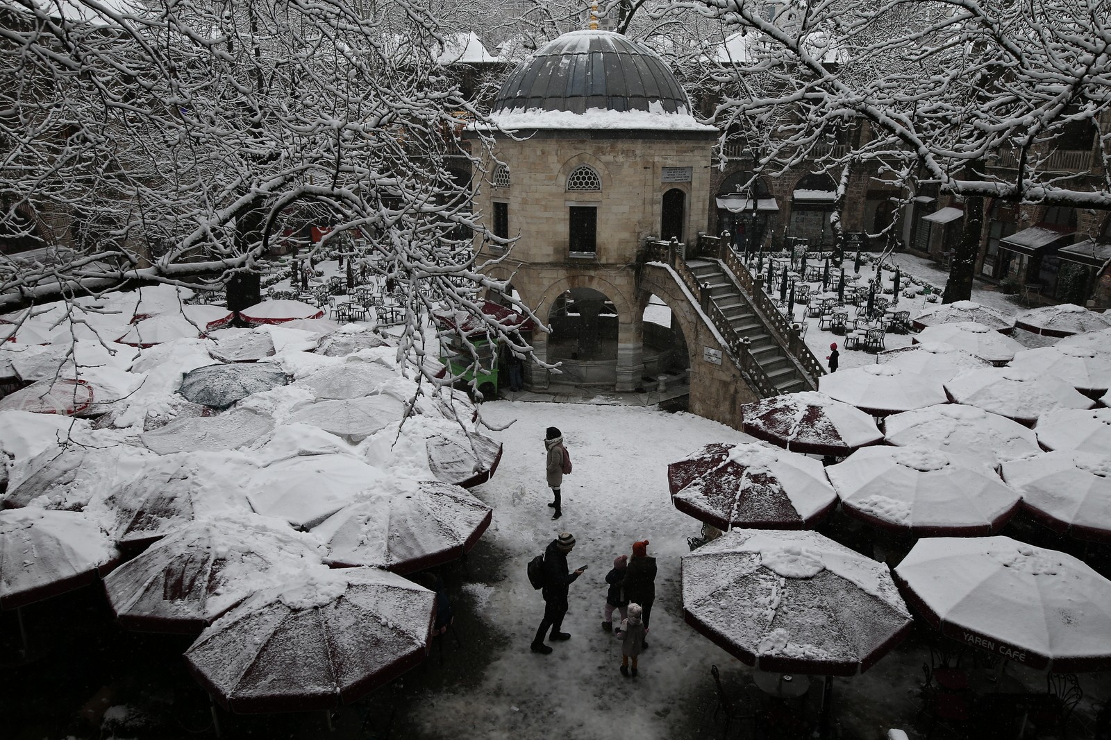 Türkiye’nin birçok şehrinde olduğu gibi Bursa’da da kar yağışı etkisini sürdürüyor. Şehir merkezinde devam eden kar yağışı güzel görüntüleri de beraberinde getirdi. 15 Temmuz Demokrasi Meydanı’ndan Cumhuriyet Caddesi’ne, Atatürk Caddesi’nden ara sokaklara kadar her yeri kaplayan beyazlığın tadını çıkaran vatandaşlar bol bol hatıra fotoğrafı çekti. Bursa’nın sembol yerlerinden tarihi Kozahan da beyazlara gömüldü.