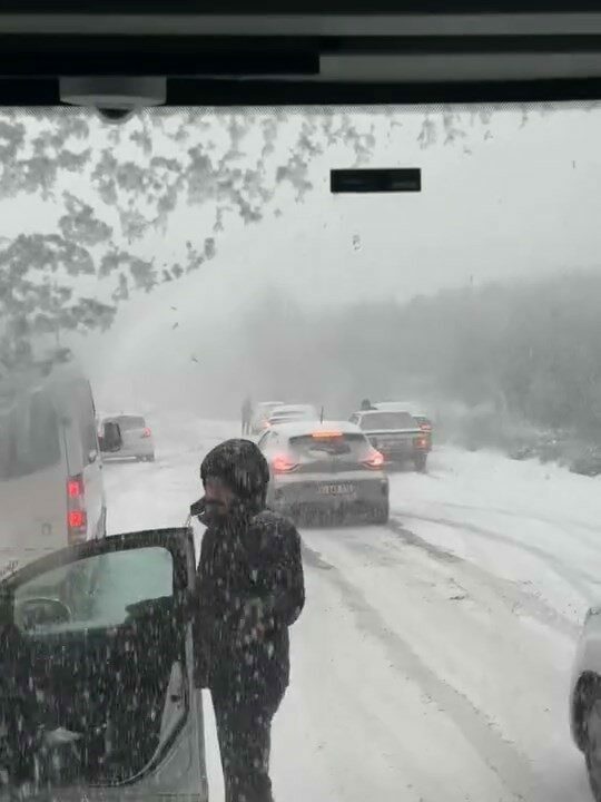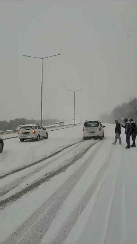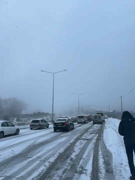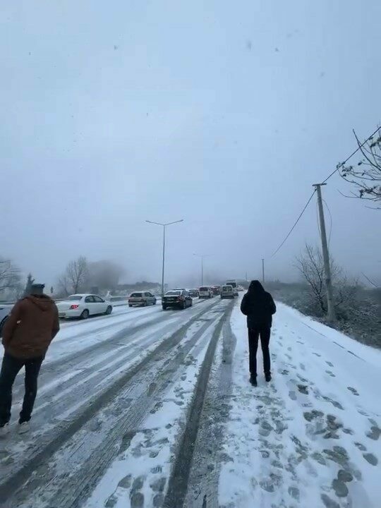Kar lastiği takılı olmayan araçların birçoğu yolda kalırken, sürücüler araçlarını yol kenarlarına park edip yürüyerek devam etti.