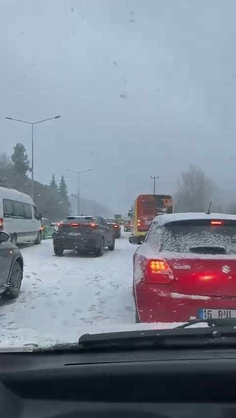 Mudanya ilçesi ile Bursa’nın merkezi arasındaki yolda, yoğun kar yağışı nedeniyle kısa süreli ulaşıma kapandı.