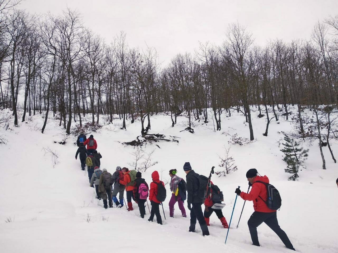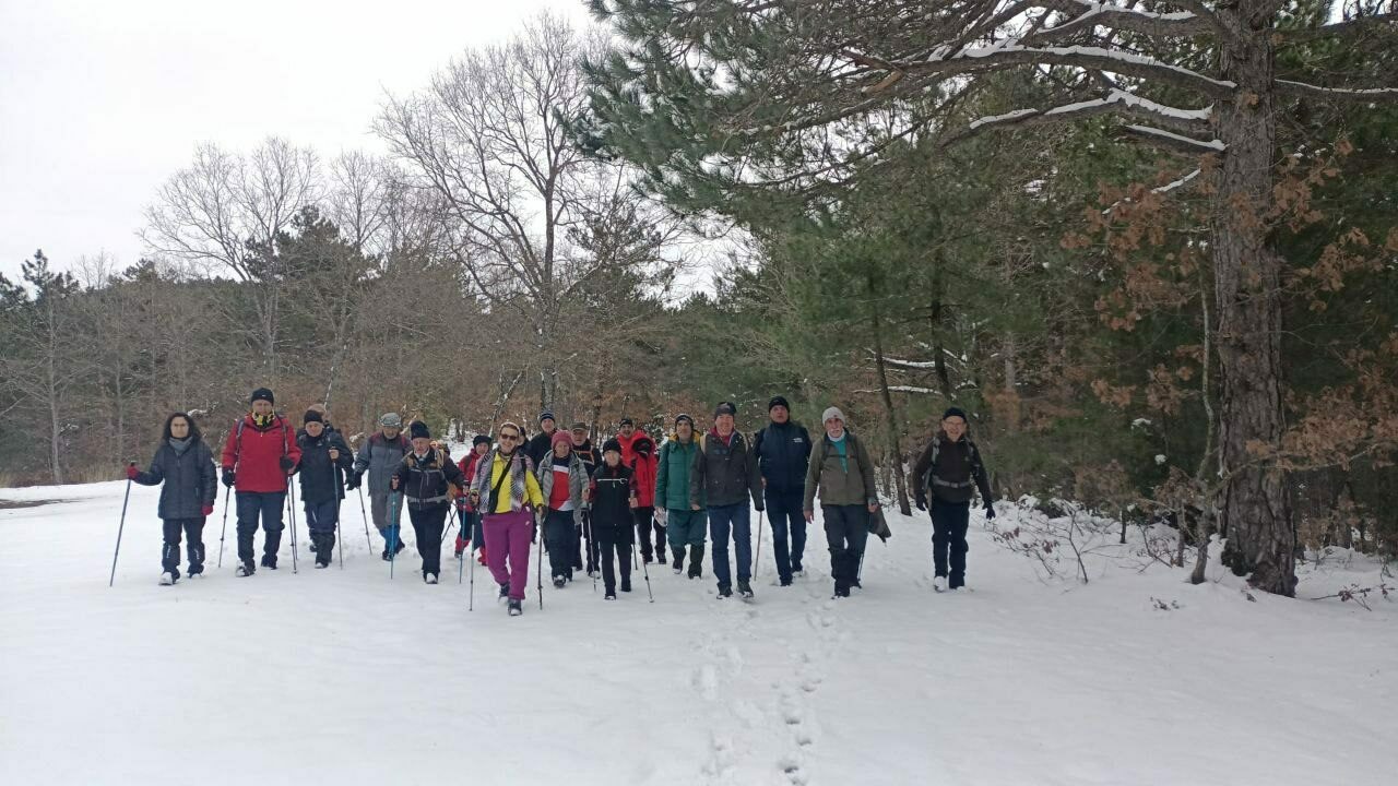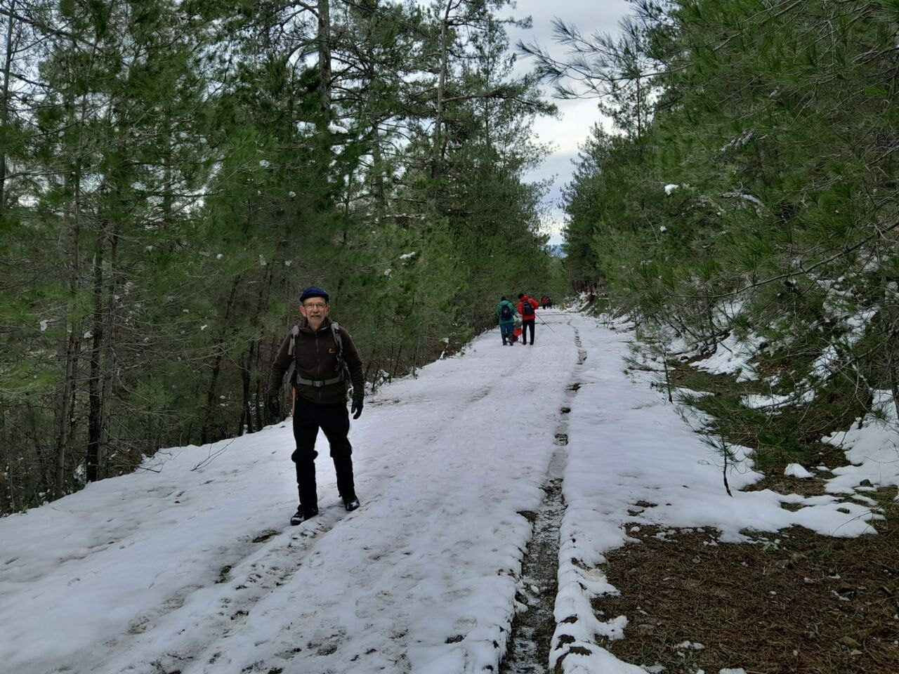 Rehber Harun Bayram, öncü Sabiha Akın ve artçı Ahmet Özgen yönlendirmesiyle başlayan yürüyüş, karlı olan 11 kilometrelik orta zorluktaki parkurda yapıldı.
