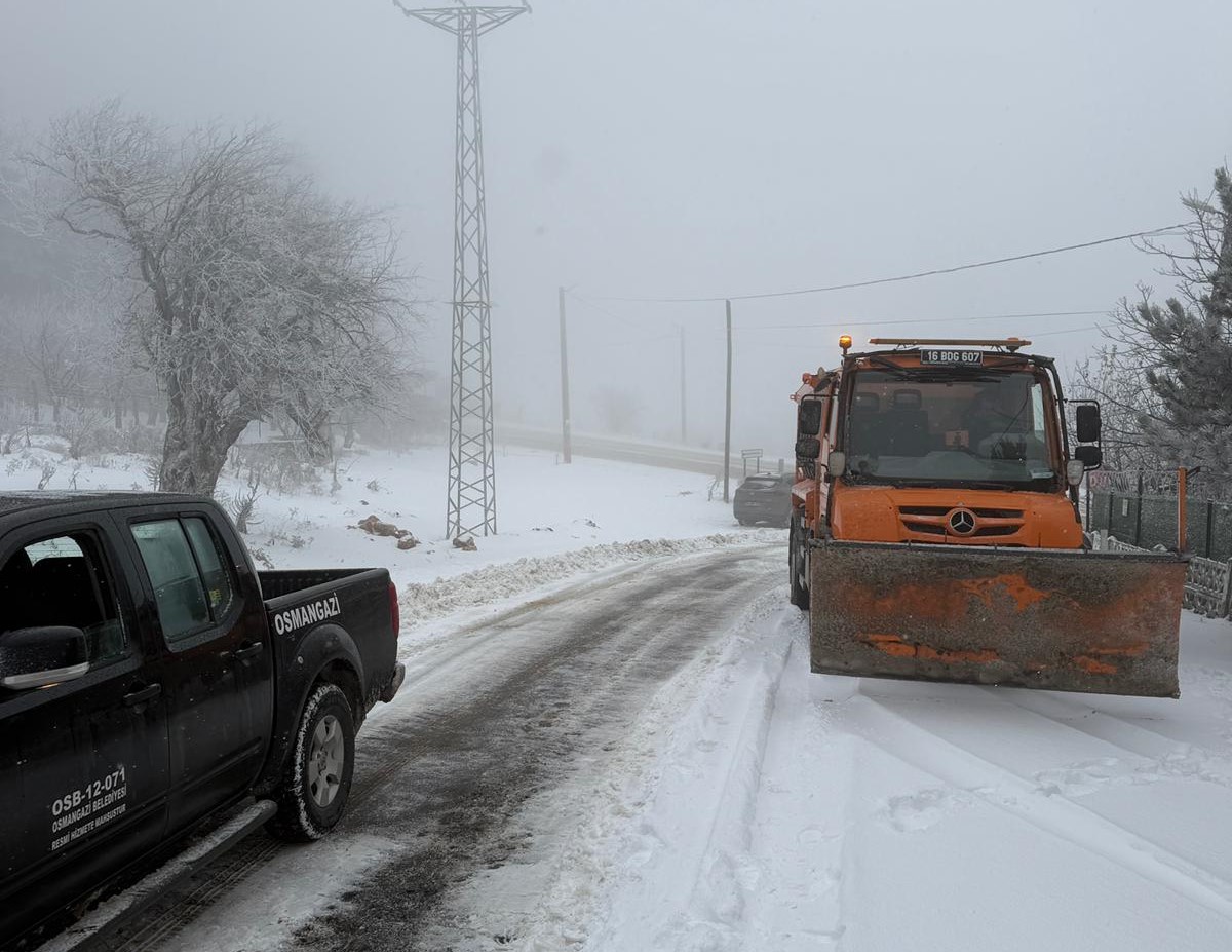 Osmangazi Belediyesi Fen İşleri Müdürlüğü’ne bağlı ekipler, 7 mahalleye anında müdahale ederek, bölgedeki ana ve ara yolları kar küreme ve tuzlama çalışmalarıyla güvenli hale getirdi.