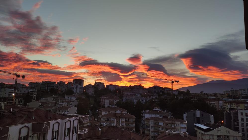 Bursa’da güneşin doğuşuyla birlikte bulutların muhteşem uyumu kartpostallık anlar oluşturdu.