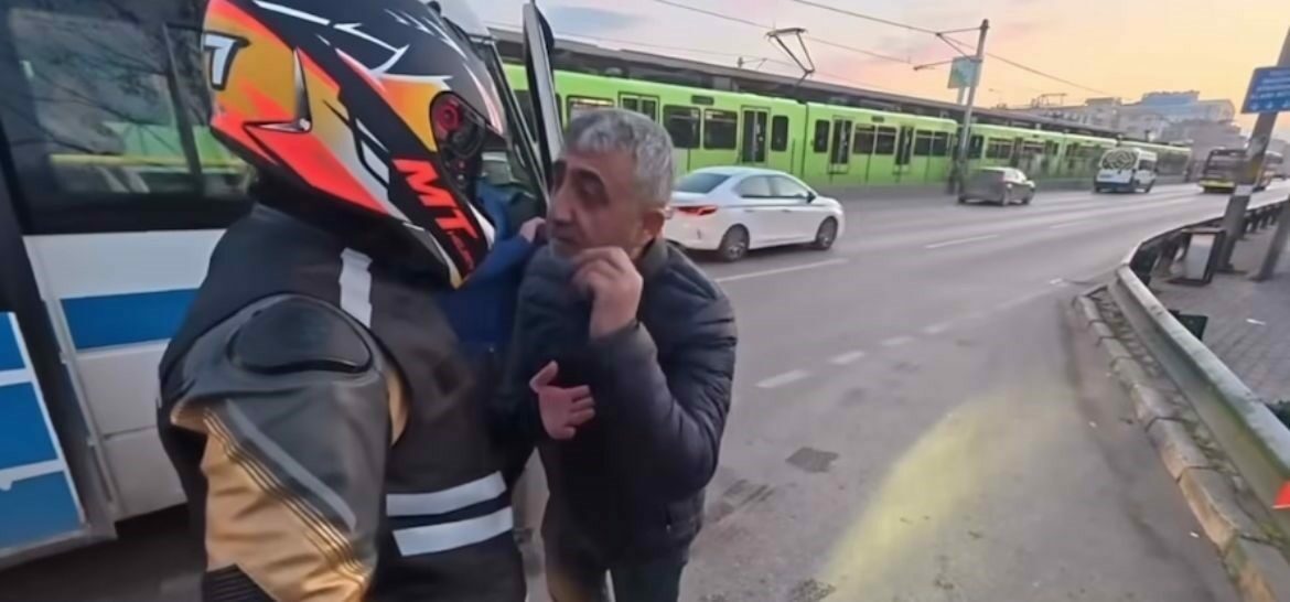 Mert A.’nın, ’Lan’ ne yapıyorsun’ demesi üzerine deliye dönen sürücü gence tokat atmaya çalıştı. O anlar kameraya yansırken, taraflar arasında artan tansiyon sonrası, ikili araçlarından inerek sözlü tartışmaya devam etti. Deliye dönen sürücü, motosikletli gence, “Sen bir bayanın yanında nasıl ’lan’ diyorsun, kendine yakıştırıyor musun ?” diyerek tepki gösterdi. Çevredekilerin araya girmesiyle taraflar ayrılırken, Mert A.’nın sürücüden şikayetçi olacağını öne sürdü.