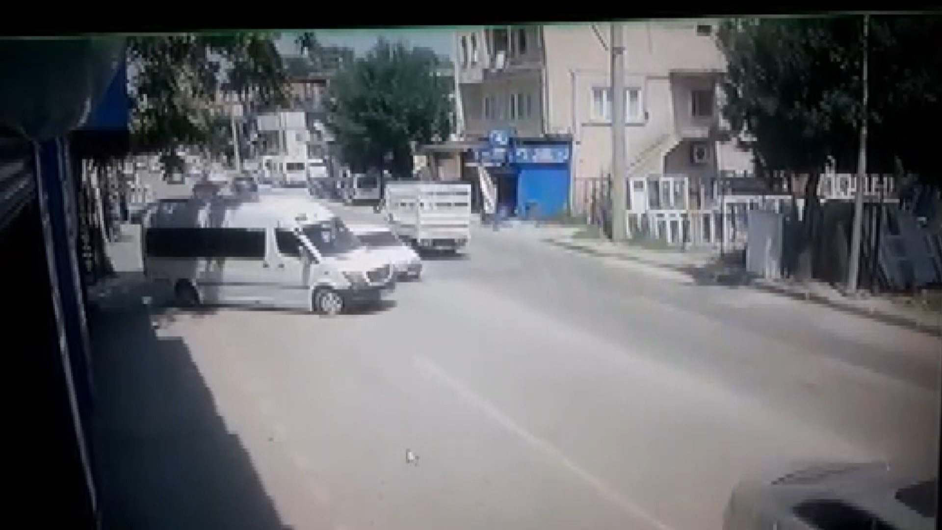 Yol kenarında park halinde bulunan minibüsün sürücüsü, dikkatsiz şekilde u dönüşü yapmak isterken yoldan geçen başka bir otomobile çarptı. Kazada otomobil kullanılamaz hale gelirken, o anlar bir iş yerinin güvenlik kamerasına anbean yansıdı.