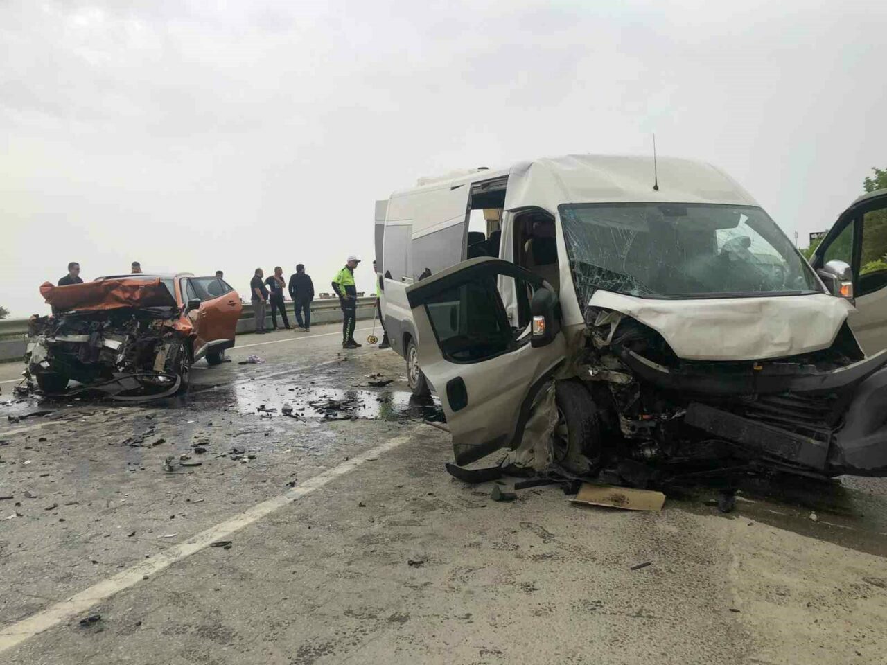 Yaşanan kazada araçlar hurdaya dönerken, 2’si ağır 12 kişi de yaralandı.