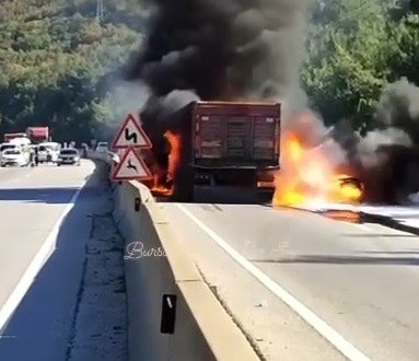 Kısa sürede alev topuna dönen kamyon sürücüsü aracını terk ederek canını kurtardı. Olay esnasında kamyon sürücüsü çaresizce aracının yanışını izlerken, araçta bir anda patlamalar meydana geldi. Jandarma trafik ekipleri Bursa-Ankara karayolunu yaklaşık 1 saat araç trafiğine kapattı.