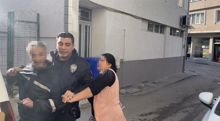 Polis ekibi tarafından Ali Ç. güçlükle polis otosuna bindirildi.