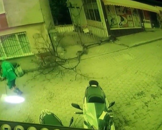 Edinilen bilgiye göre, temizlik işçisi kaldırımda bıraktığı süpürge ve kovasını almaya gitti. Tam aldığı sırada arkasından ağaç devrildi. Neye uğradığını şaşıran temizlik işçisinin bu anı kameralara saniye saniye yansıdı.