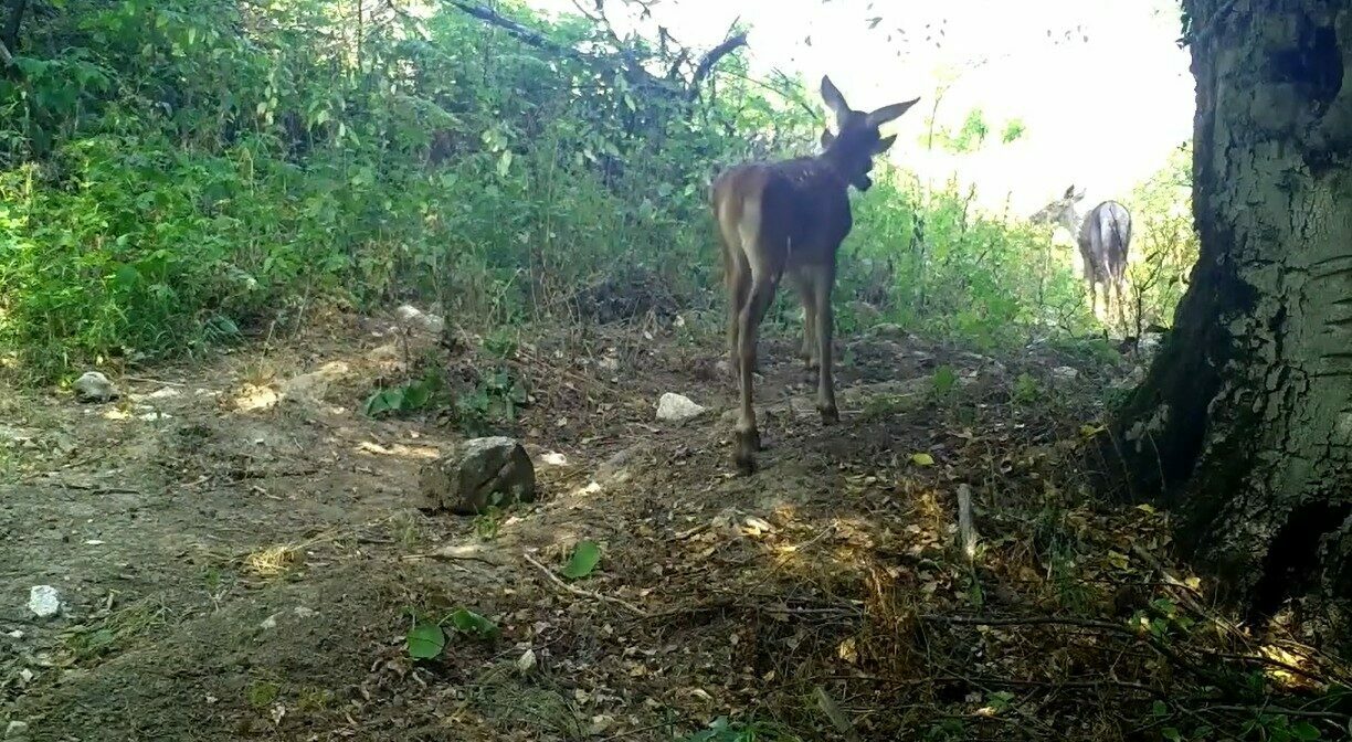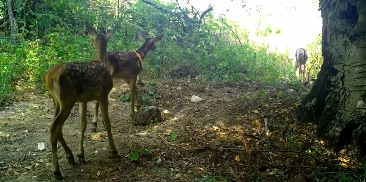 Bursa’da, Doğa Koruma ve Milli Parklar (DKMP) Genel Müdürlüğü tarafından yaban hayatını gözlemlemek için kurulan fotokapana kızılgeyik ile yavruları yansıdı.
