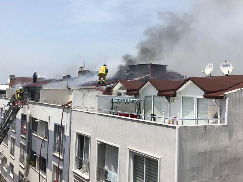 Alınan bilgiye göre, Demirtaş Mahallesi Tutar Sokaktaki inşaatı süren bir binanın çatı katında kaplama yapılırken yangın çıktı.