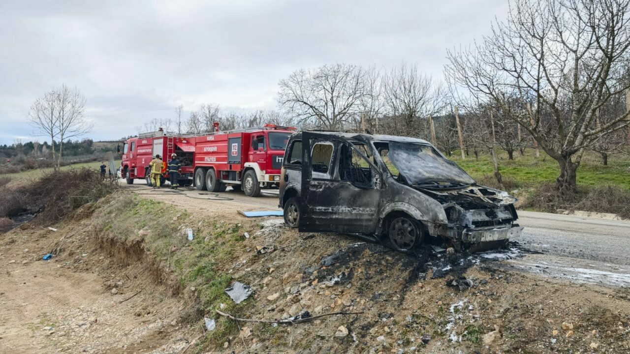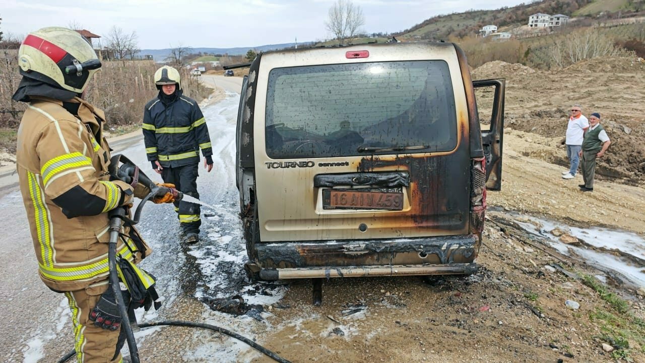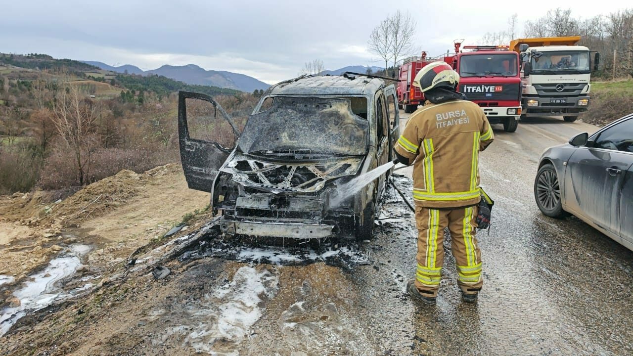 İsaören Mahallesi Boğazova Yaylası yolunda park halinde bulunan, İsaören Mahallesi Muhtarı İsmail Çıbukçu’ya ait 16 AIV 459 plakalı hafif ticari araç, henüz belirlenemeyen nedenle yanmaya başladı.