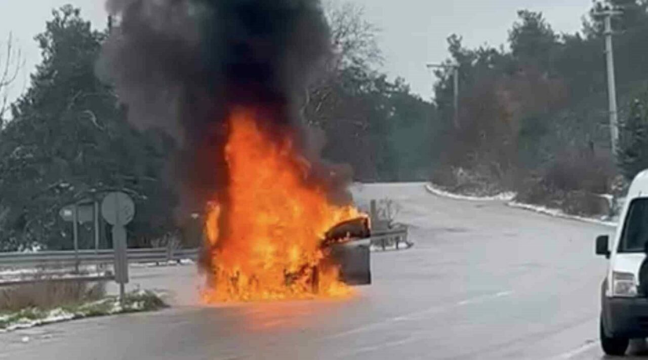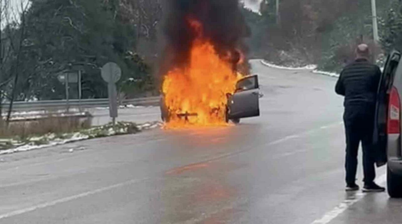 Edinilen bilgiye göre, seyir halindeki bir otomobilden duman çıktığını fark eden aracın sürücüsü araçtan inerek uzaklaştı.