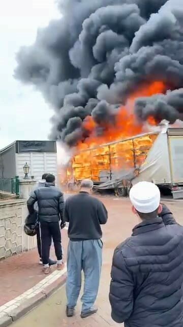 Edinilen bilgiye göre, park halindeki 16 BRT 373 plakalı çekiciye bağlı 16 BPA 863 plakalı dorsede yüklü bulunan süngerler henüz bilinmeyen bir nedenle yanmaya başladı. Kısa sürede büyüyen alevler, hemen yanında park halinde bulunan mobilya yüklü 16 BDD 870 plakalı dorsenin de tutuşmasına neden oldu.