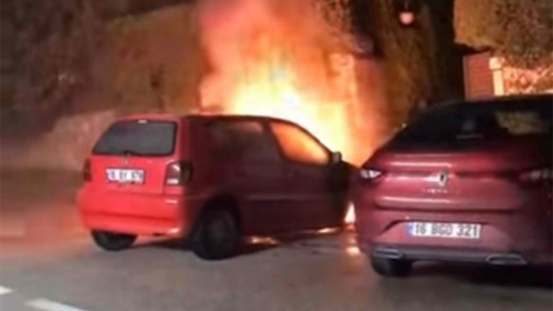 İtfaiye ekiplerince alevler kısa sürede söndürülürken, araç kullanılamaz hale geldi.