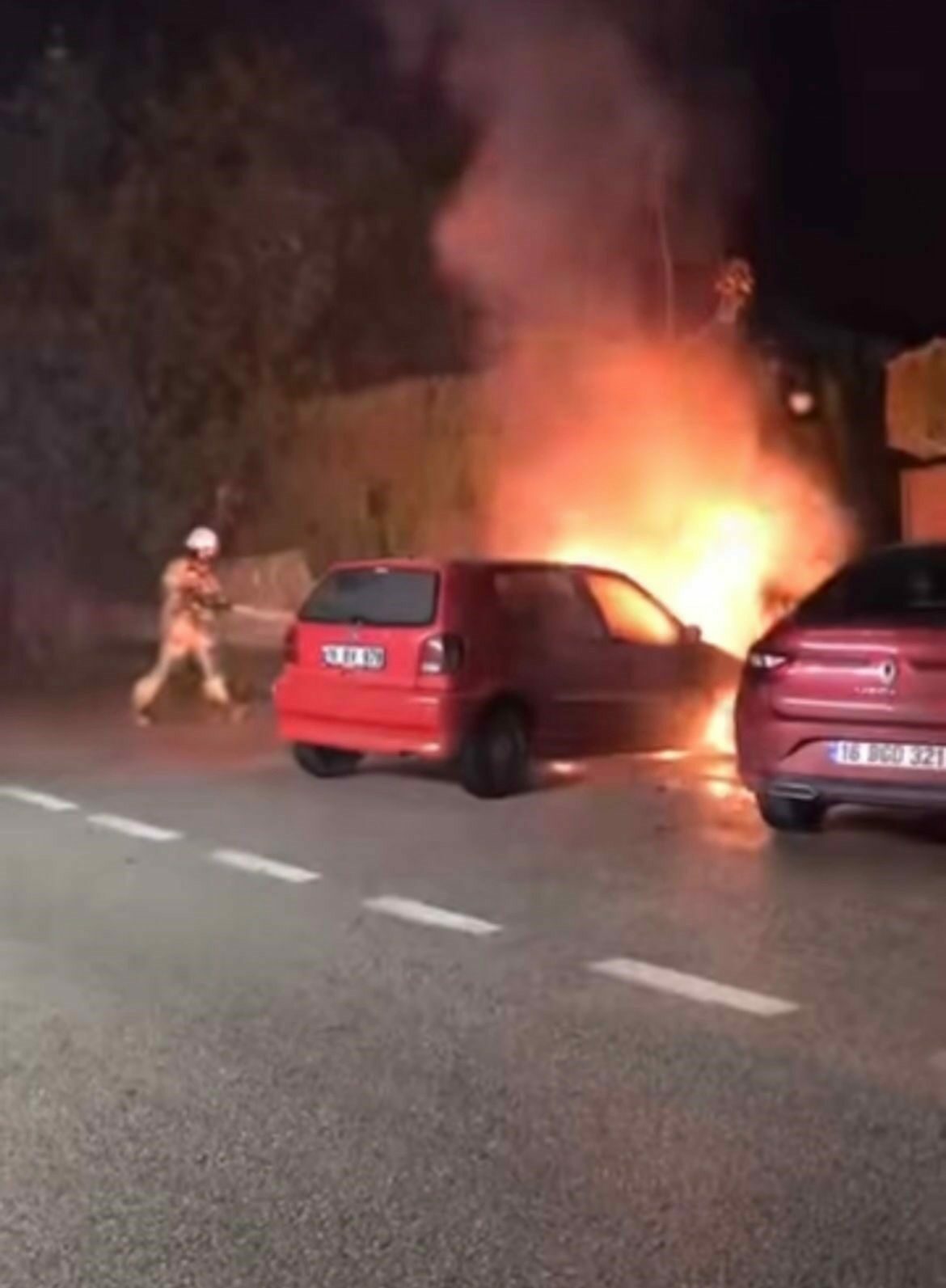 Mudanya ilçesine bağlı Bademli Mahallesinde park halindeki otomobil bir anda alev aldı.