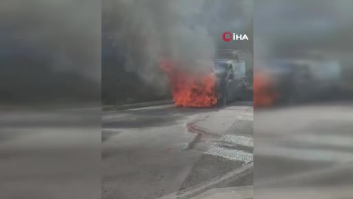 Edinilen bilgiye göre, dumanlar çıktığını gören minibüs şoförü, aracı kenarı çekti.