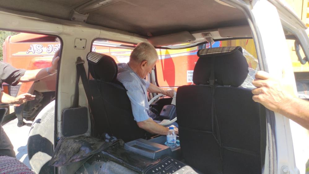 Minibüs sürücüsü itfaiye ekiplerince sıkıştığı yerden çıkarıldı.