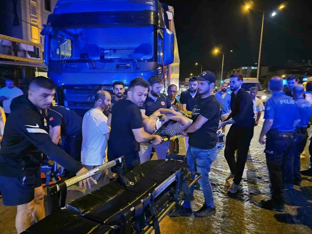 Sağlık ekiplerinin müdahalesinden sonra TIR kendi içindeki mekanizma ile yerden yükseltilince kaskı sıkışmış haldeki sürücü altından çıkartıldı.