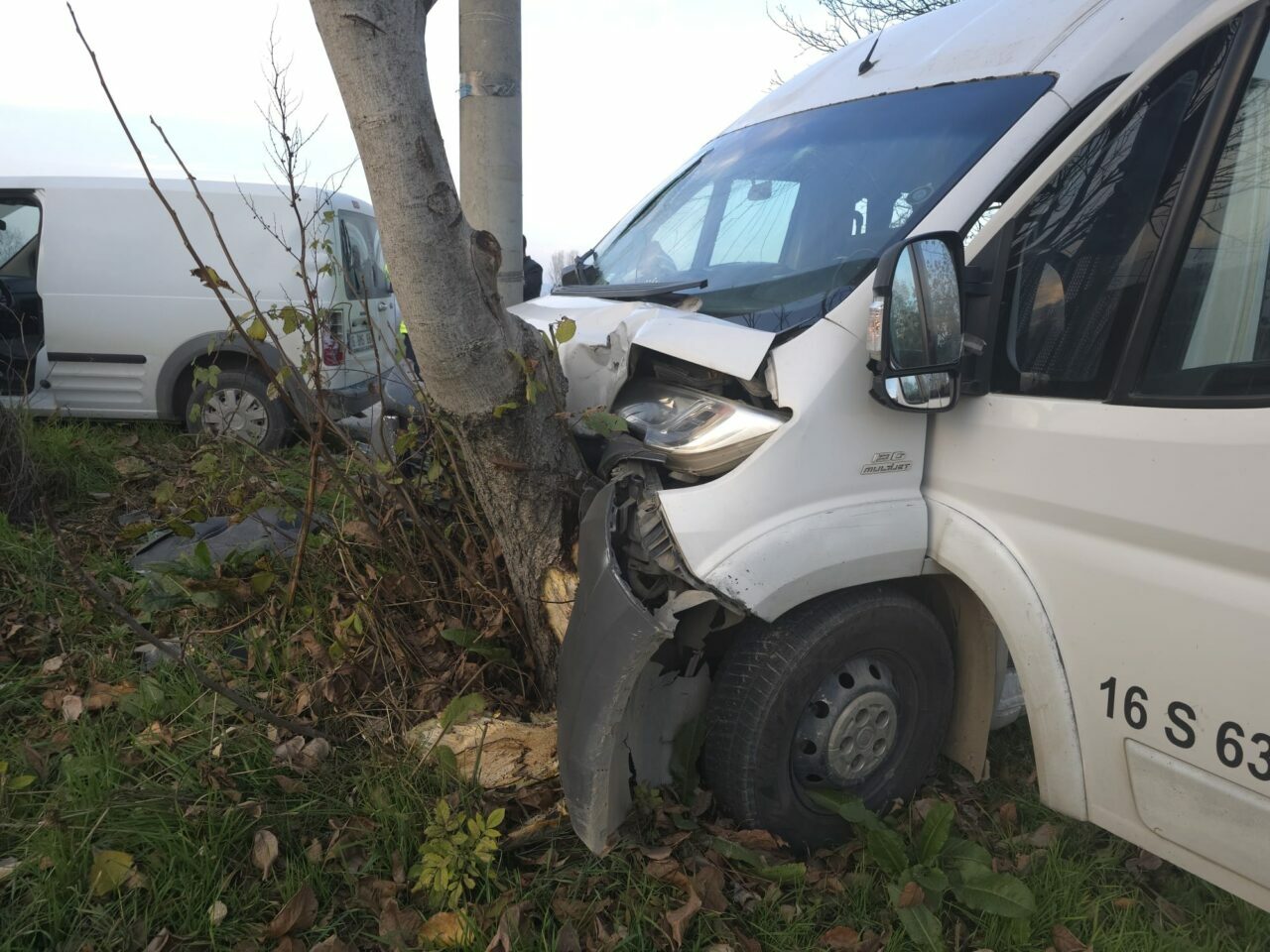 Kaza, saat 17.00 sıralarında İnegöl ilçesi kırsal Kurşunlu Mahallesi yolu üzerinde meydana geldi. Kurşunlu’dan İnegöl yönüne giden Cayan K. (33) yönetimindeki 16 BSM 687 plakalı hafif ticari araç, dönüş yapmak istediği sırada arkadan gelen Mustafa G. (40) idaresindeki 16 S 8363 plakalı su fabrikası işçilerini taşıyan servis minibüsüyle çarpıştı. Çarpışmanın etkisiyle kontrolden çıkan iki araç, yol kenarındaki ağaca ve enerji nakil hattına ait beton direğe çarparak durabildi.