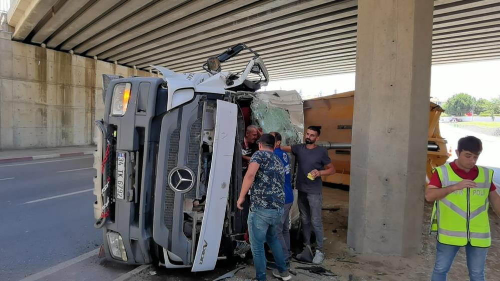 Çevreyolu üzerinde sürücü Adnan Ö.(57) yönetimindeki 34 TK 6792 plakalı hafriyat kamyonunun dorsesi, seyir halindeyken bir anda açıldı. Açık kalan dorse, Hikmet Şahin Köprülü kavşağına çarpınca kamyon devrildi. Kaza sonucu yaralanan sürücü araçta sıkıştı.