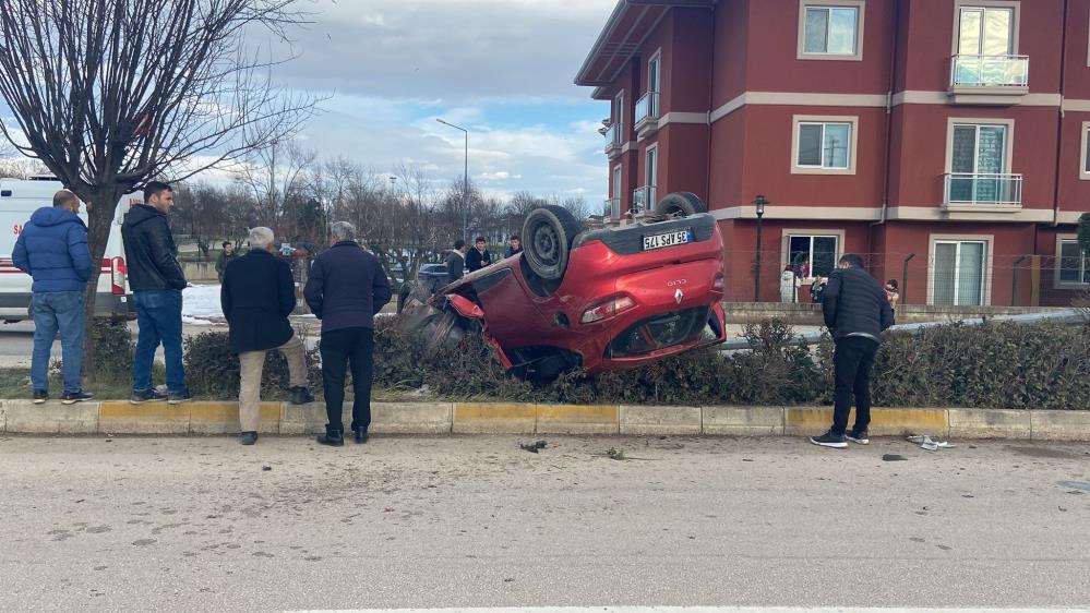 Çarpmanın etkisiyle otomobil takla atarak ters dururken, aydınlatma direği devrildi. Kaza sonucu sürücü ile yanındaki arkadaşı Samet Tüter (20) yaralandı. Yaralılar olay yerine sevk edilen ambulansla İnegöl Devlet Hastanesine kaldırıldı.