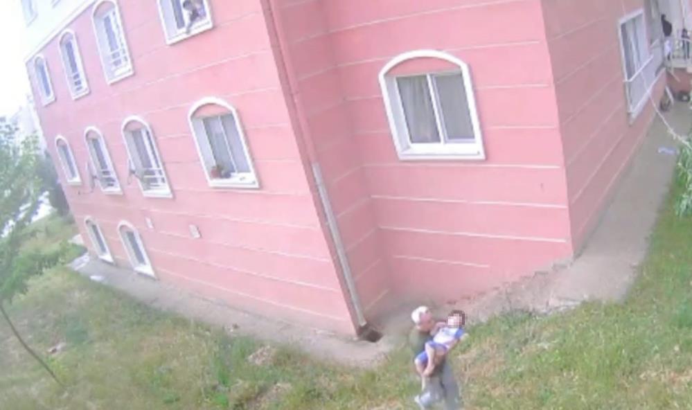 Çocuğun düşme anı ve vatandaşların yardıma koşması güvenlik kameralarına saniye saniye yansıdı.