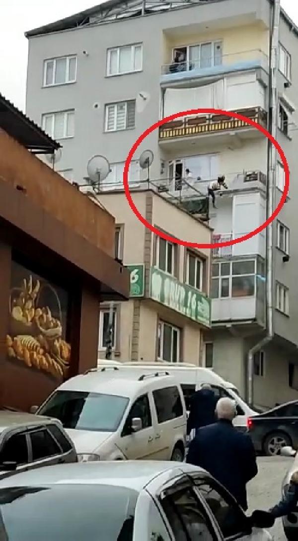 6 katlı binanın son katında oturan Semanur Ş., evinin balkonuna çıkıp, demir korkuluklara tutunarak aşağı sarktı.