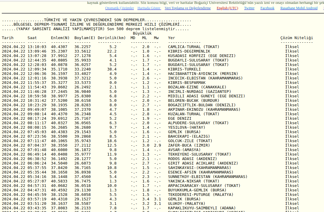 Derinlik: 4.3 km#Kandilli— Kandilli Rasathanesi (@Kandilli_info) April 22, 2024